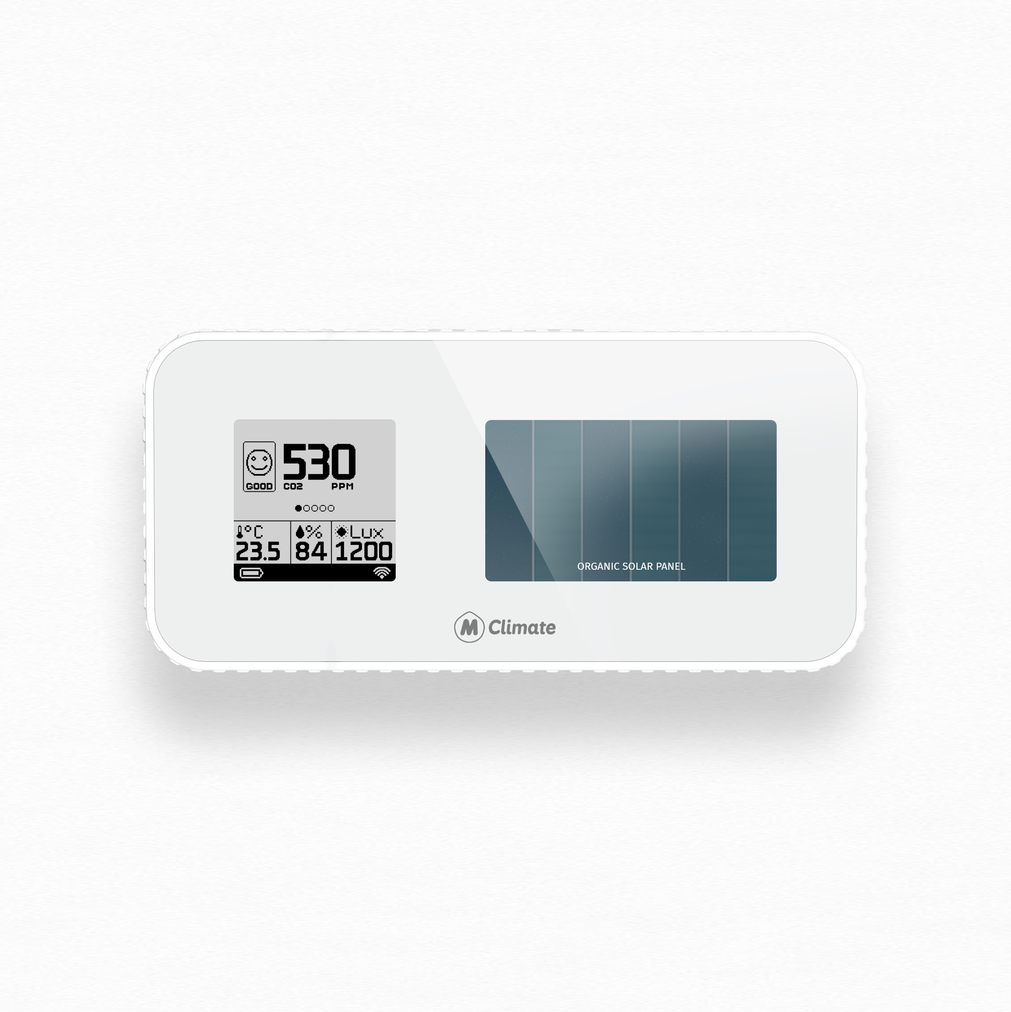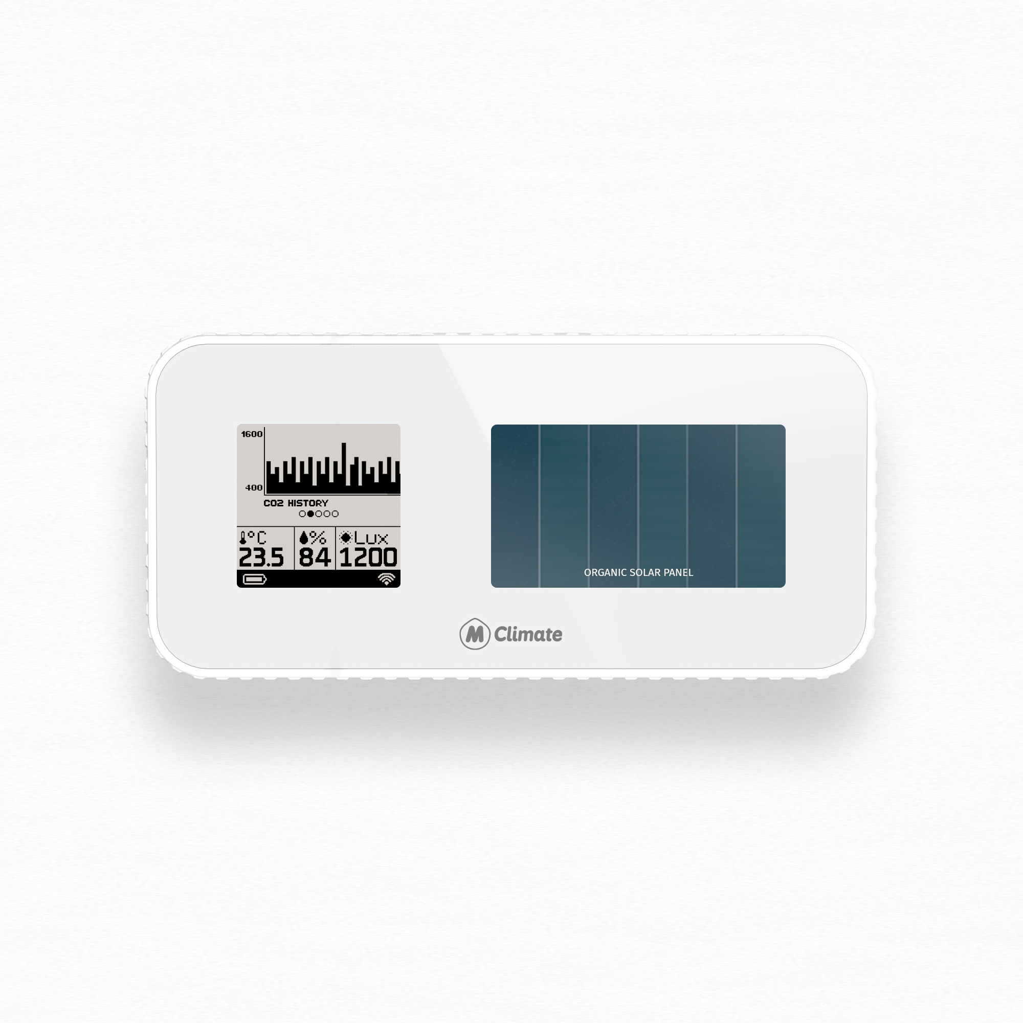 MClimate's CO2 Display lite is a stand-alone LoRaWAN CO2 sensor powered entirely by solar energy using an organic solar panel. The device features a 1.54