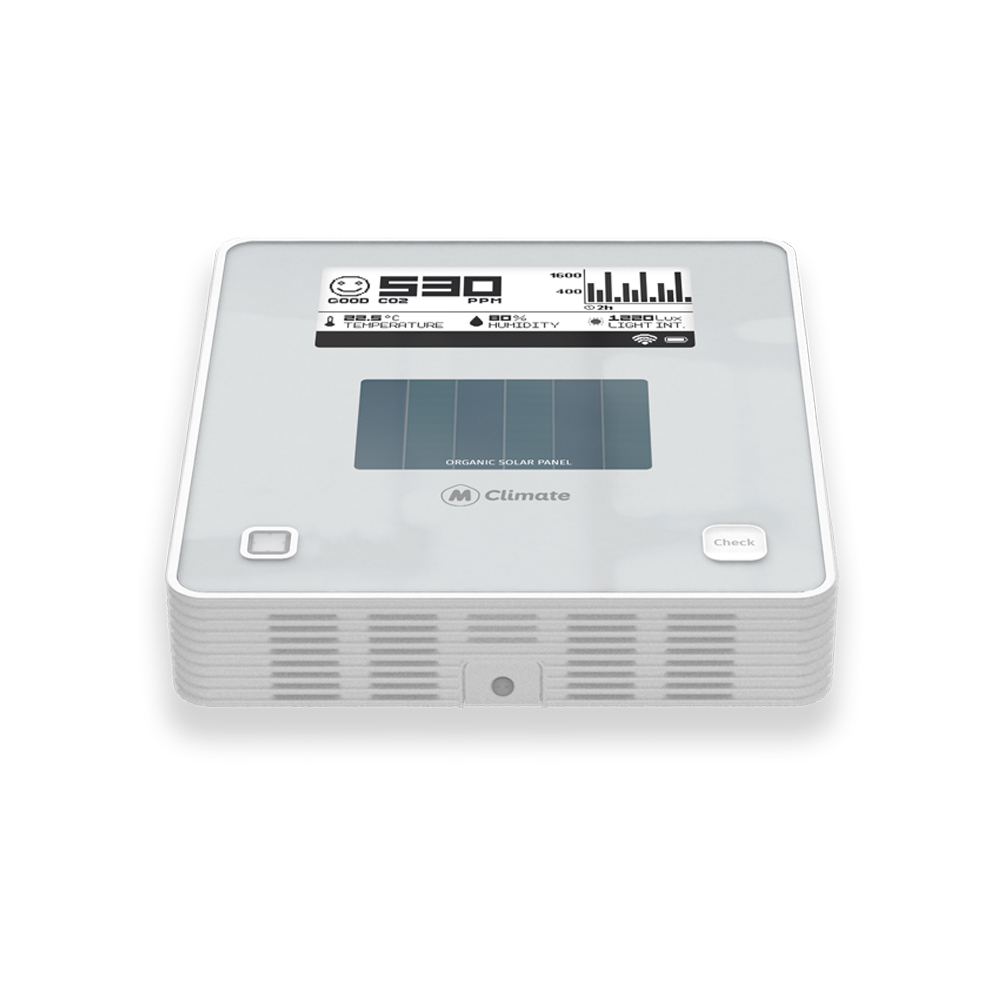 Equipped with a PIR sensor, the device detects room occupancy to help regulate ventilation and heating in unused spaces, cutting energy waste. The 2.9” e-ink screen provides a clear view of current CO2 levels, temperature, humidity, and historical trends. It also displays connectivity status for easy setup and monitoring. Powered by integrated organic solar panels, this smart device charges itself using an internal supercapacitor, offering a virtually maintenance-free experience. Alternatively, the MClimate CO2 display can also be powered by AA batteries or by USB-C.