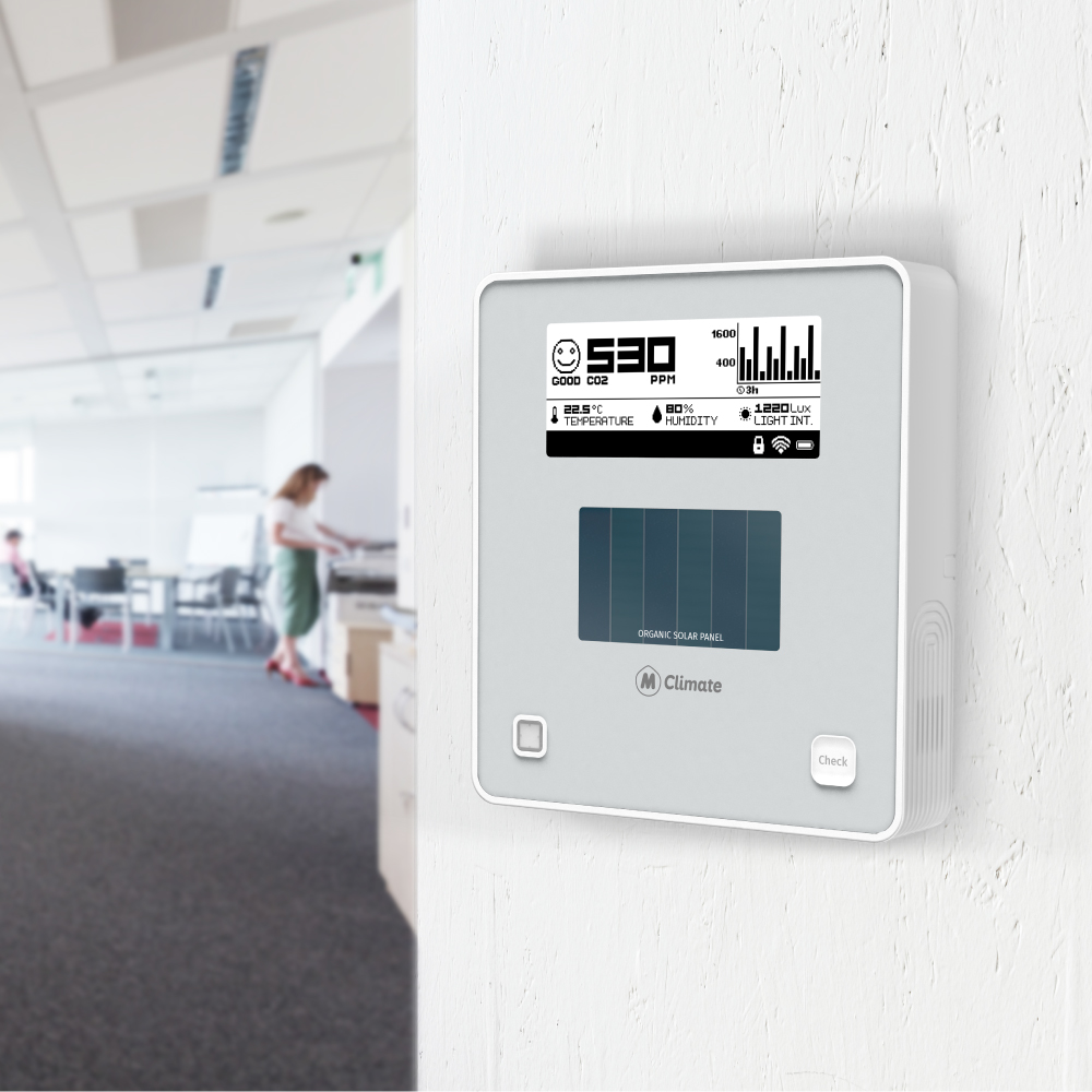 The MClimate CO2 Display LoRaWAN is a stand-alone CO2 sensor powered entirely by solar energy using an organic solar panel. The device features a 2.9