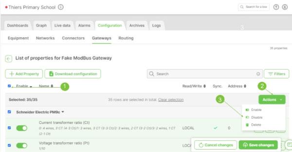 It is now possible to mass edit the properties of a single device or gateway to activate, deactivate or delete them through a new interface.