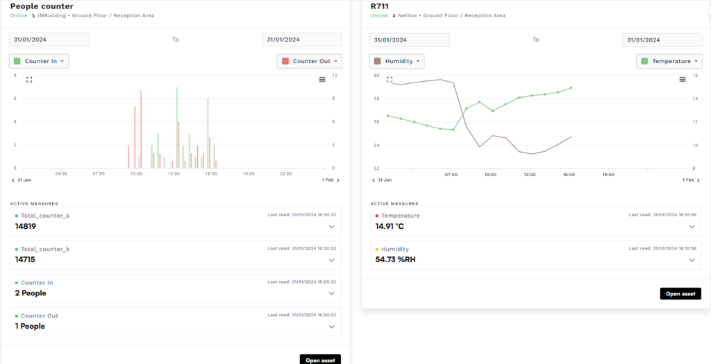 Depending on the type of floor plan, you can have various zones that represent different floors of that building or different areas at your site. From this overview page, you can filter the view by particular device type. You can also scroll through all the graphs and data of your devices. On the digitised floor plan, you can click on any of the sensors to directly go into its data visualisation or you can also click on the desired zone to see all sensors that are added within that zone.